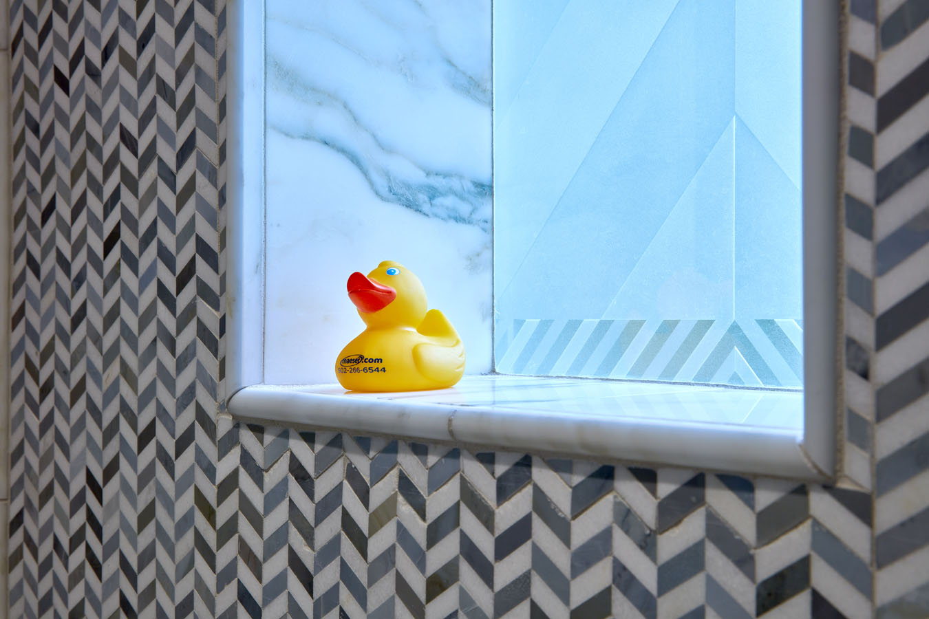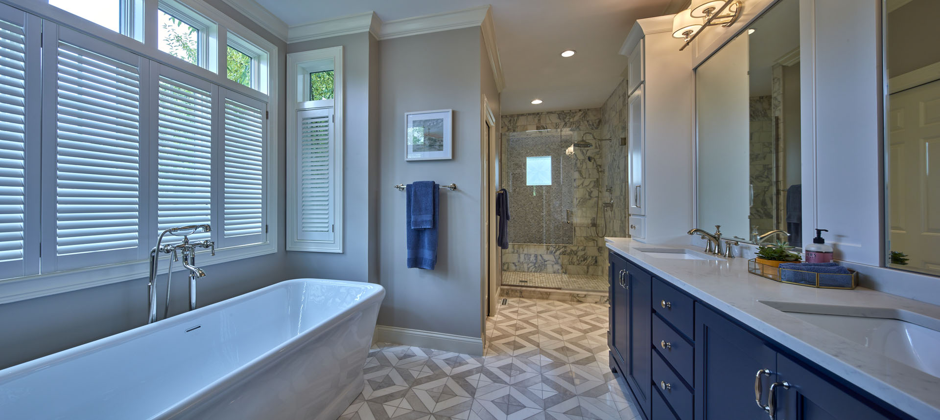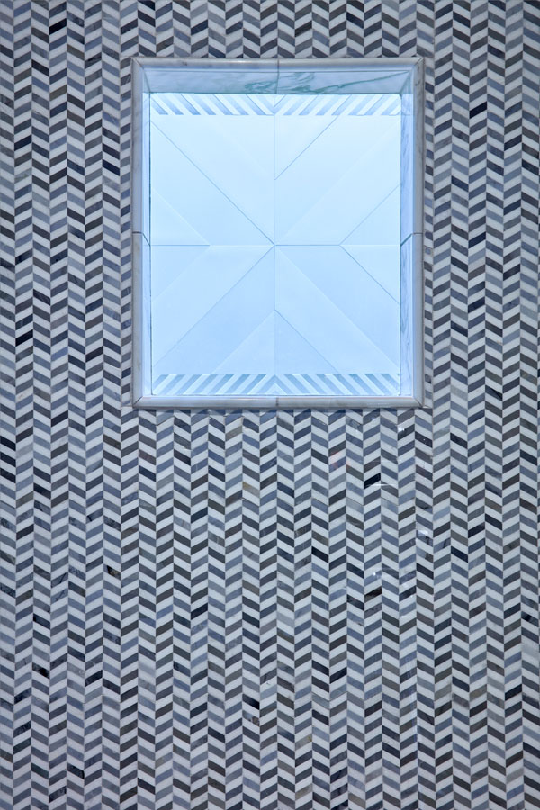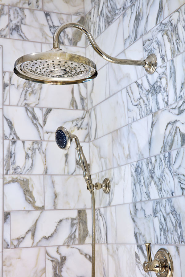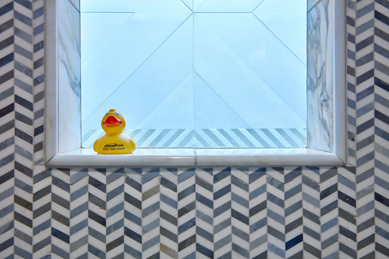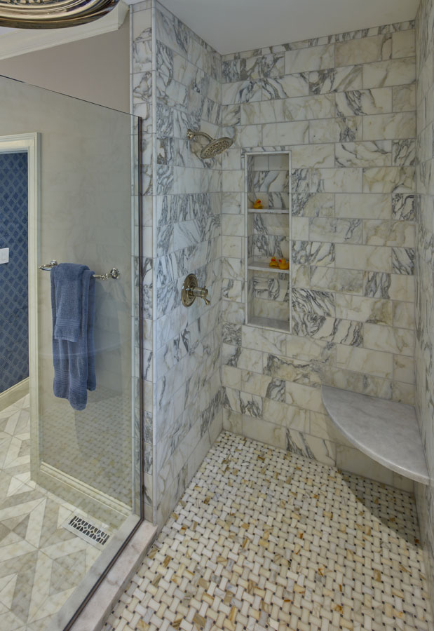 Maeser rebuilt the entire bathroom with a custom shower, heated marble floors, a free-standing tub, custom cabinetry and a custom stained-glass window in the shower.