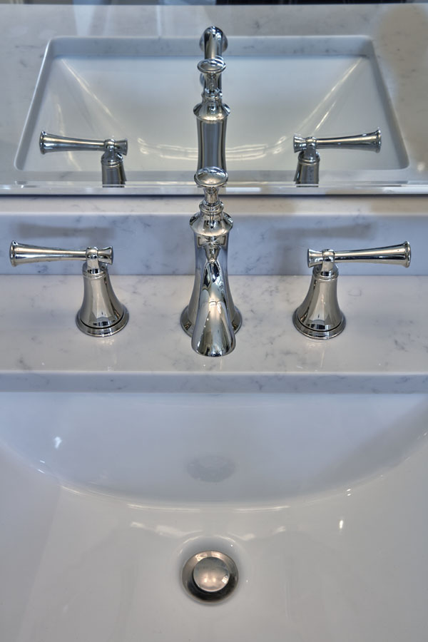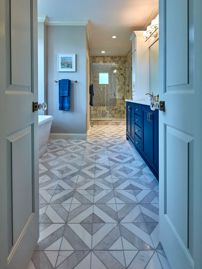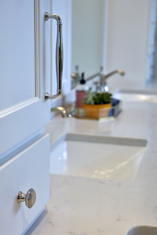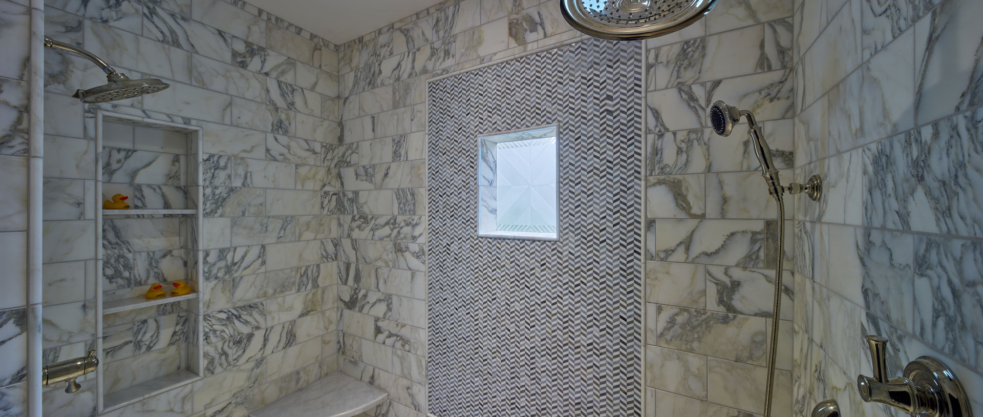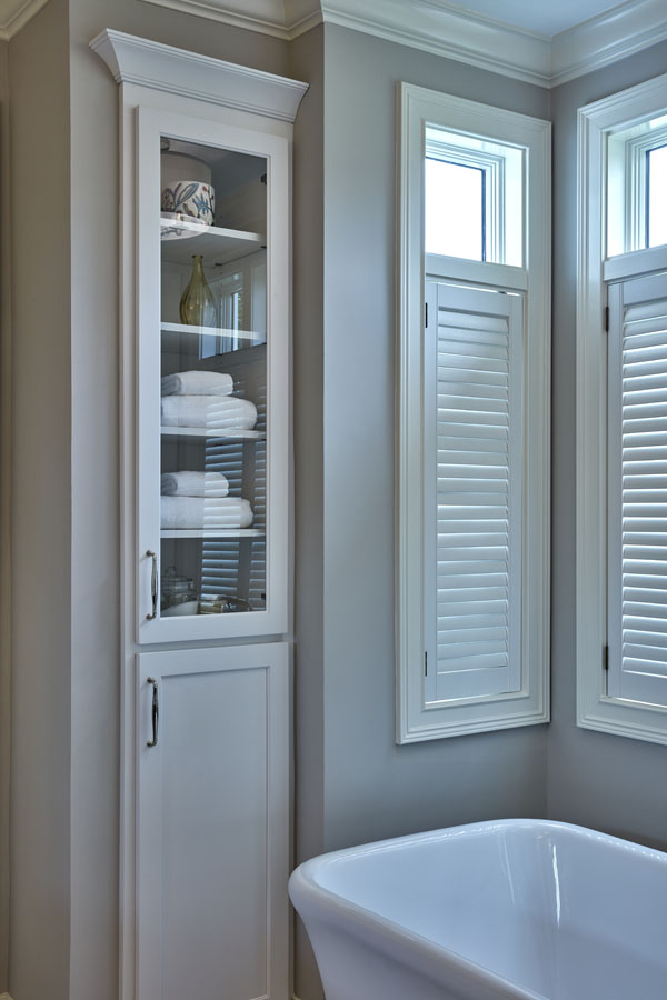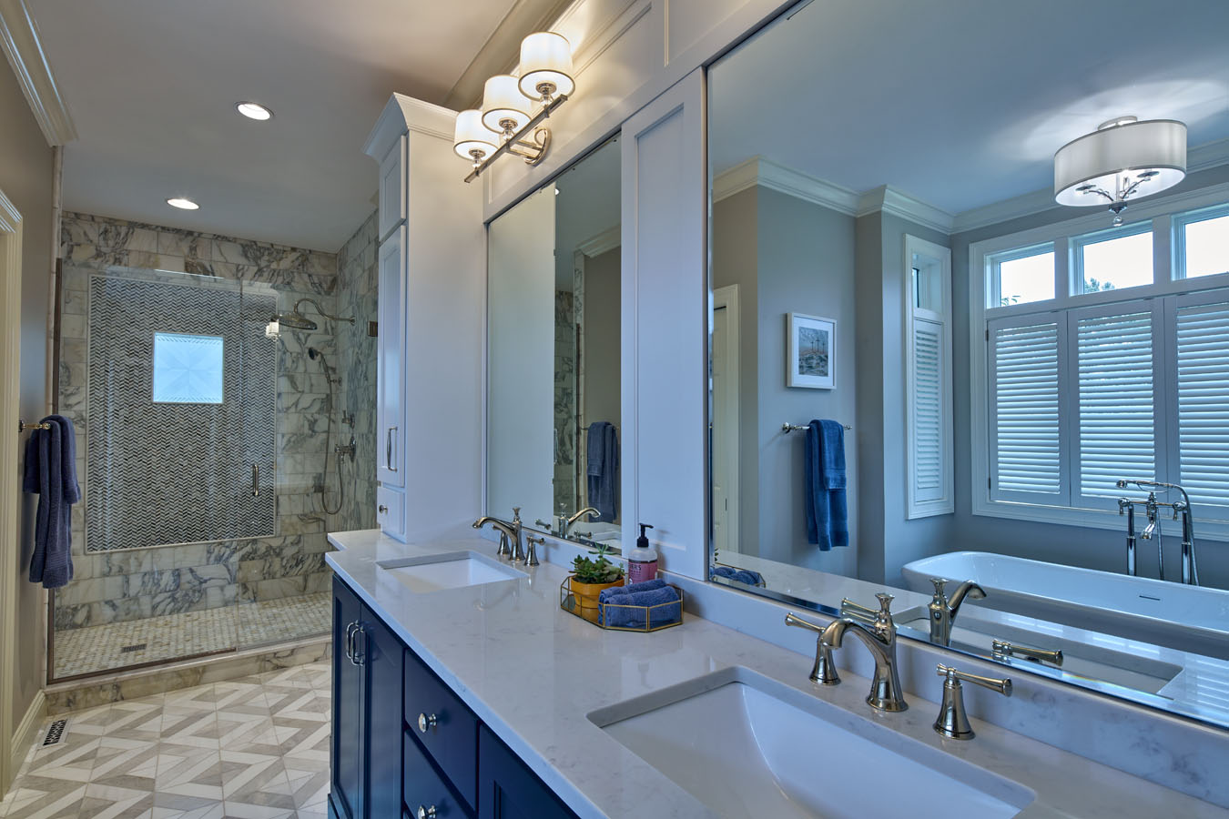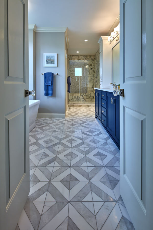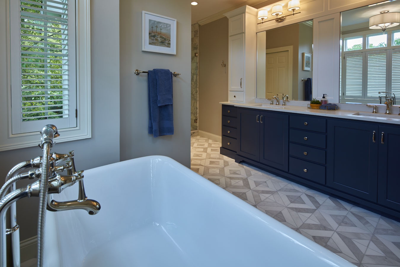 Maeser rebuilt the entire bathroom with a custom shower, heated marble floors, a free-standing tub, custom cabinetry and a custom stained-glass window in the shower.