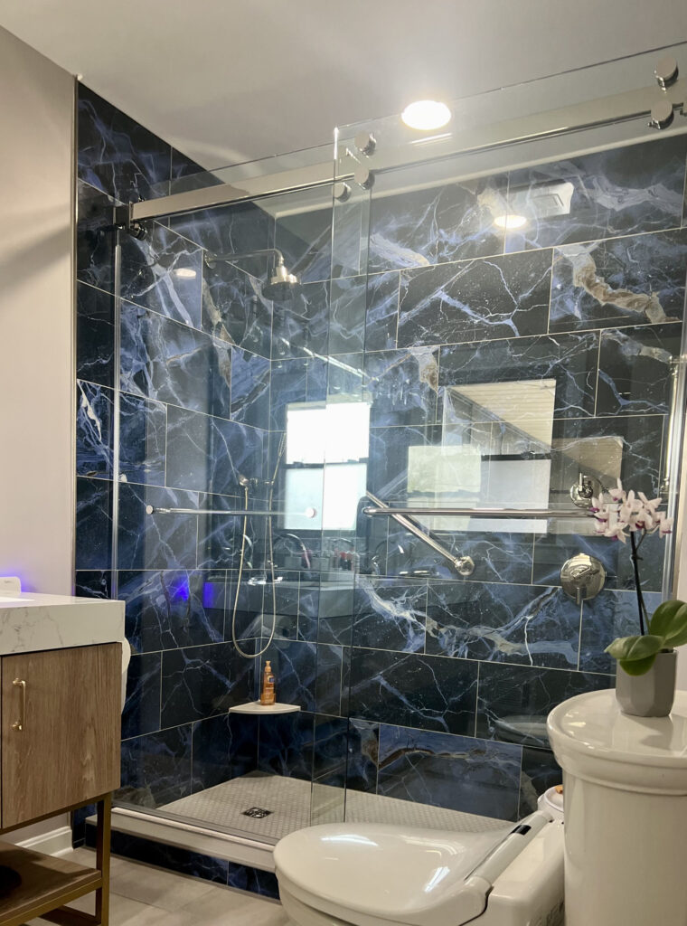 Maeser solved this for them while enlarging their shower by adding grab bars and electrical hook ups for a bidet seat.