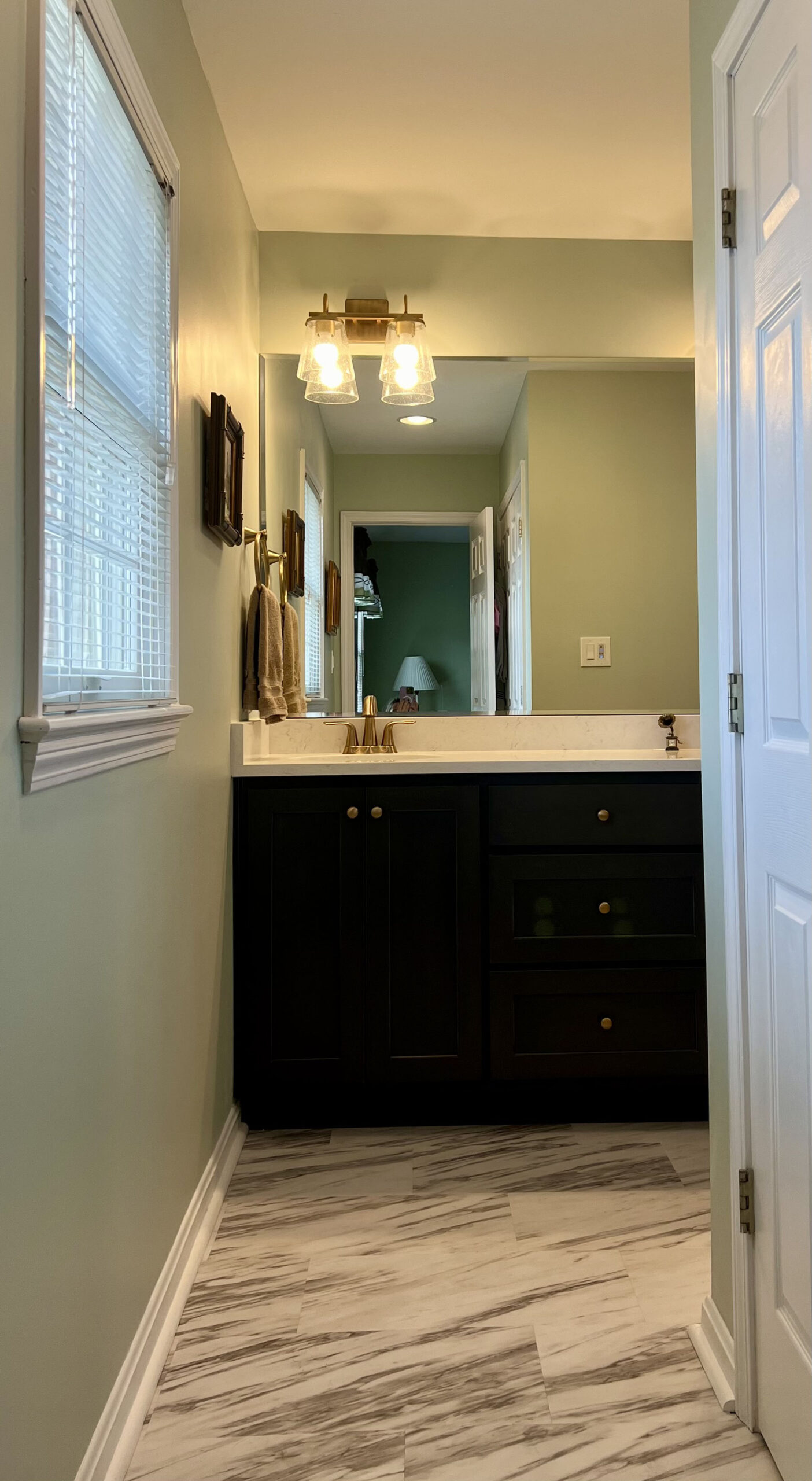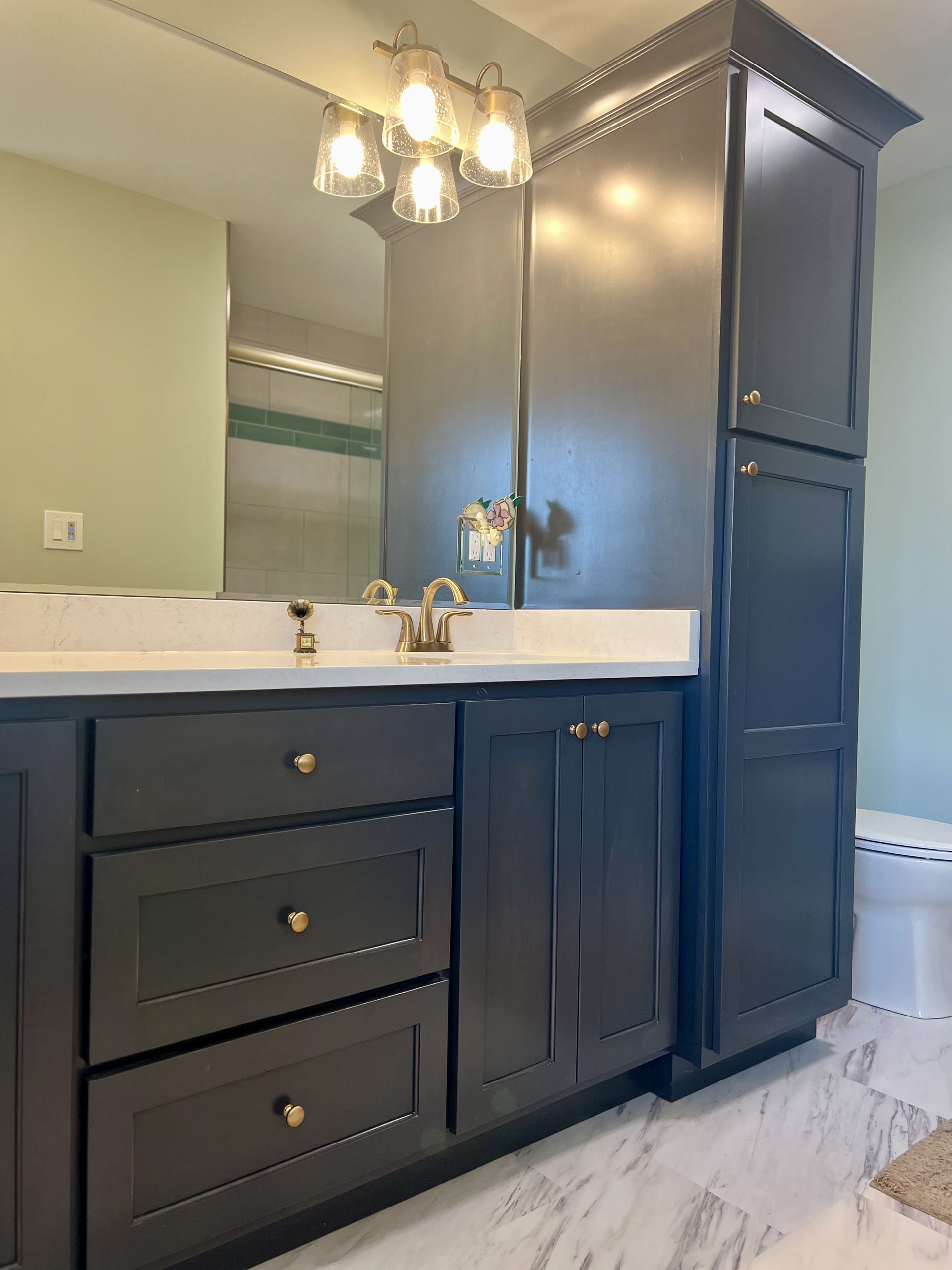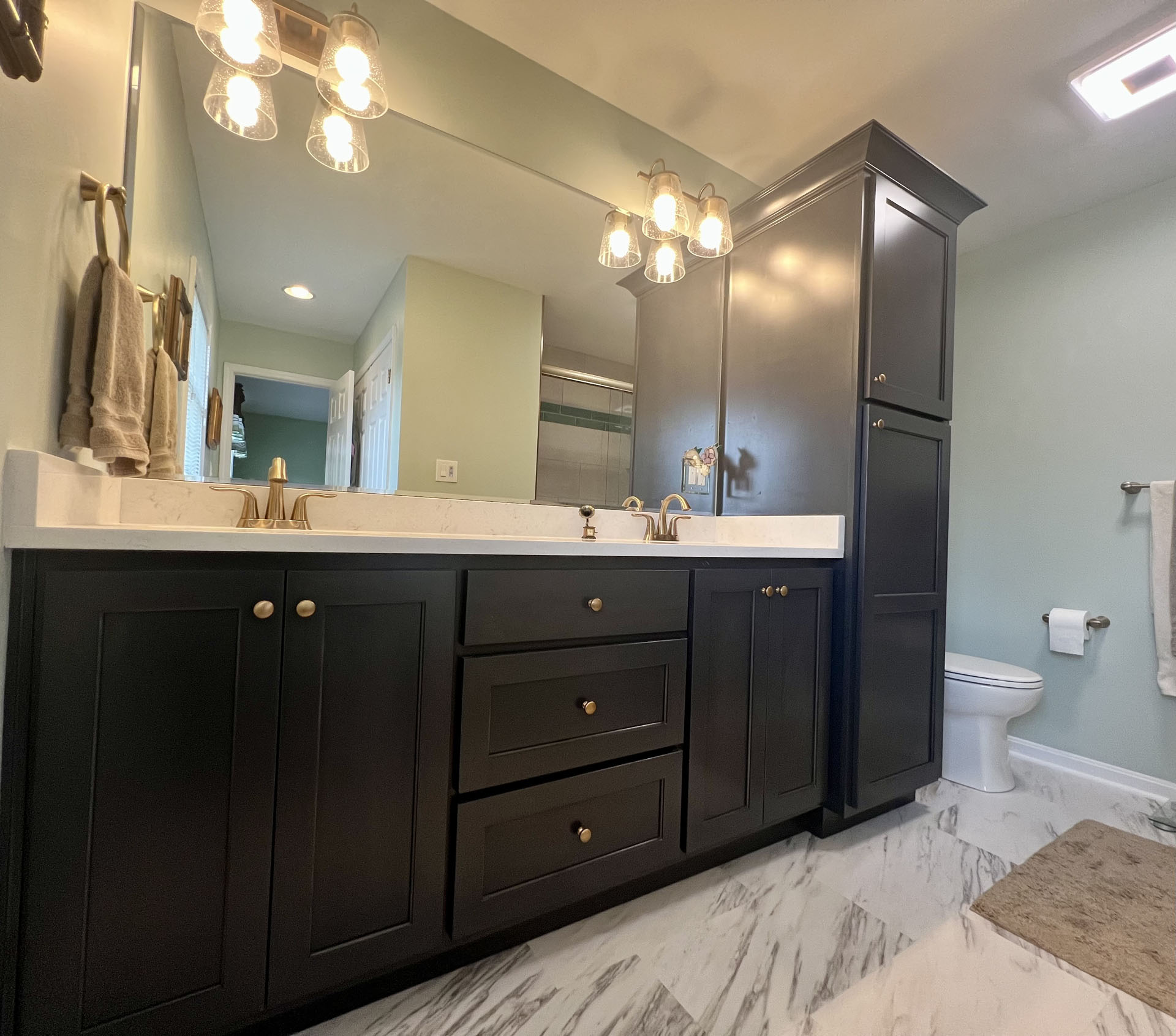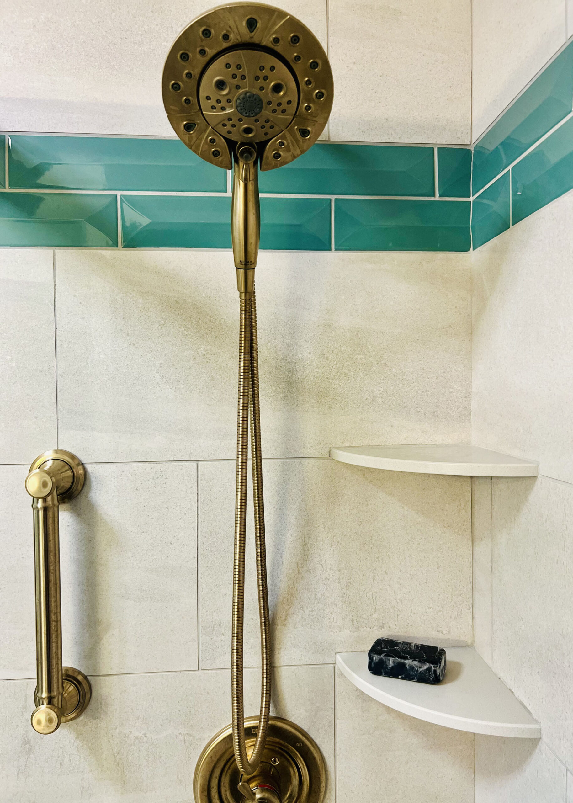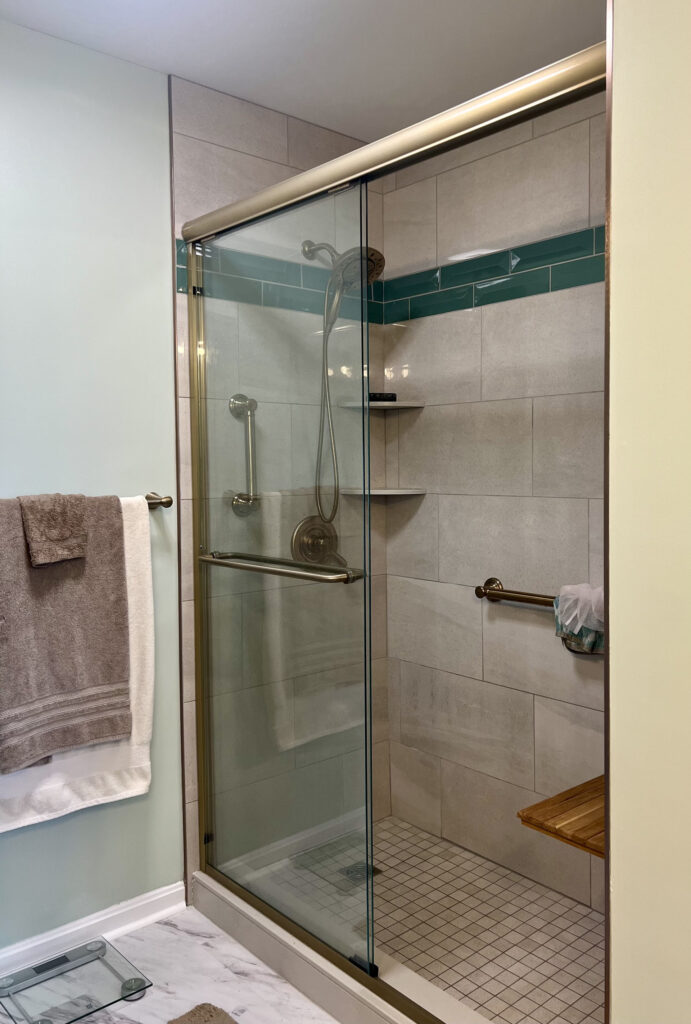 The homeowners had an outdated bathroom that wasn’t accessible enough for their needs. After consulting with Maeser, they settled on a tub to shower conversion with a seat and floor warmers.