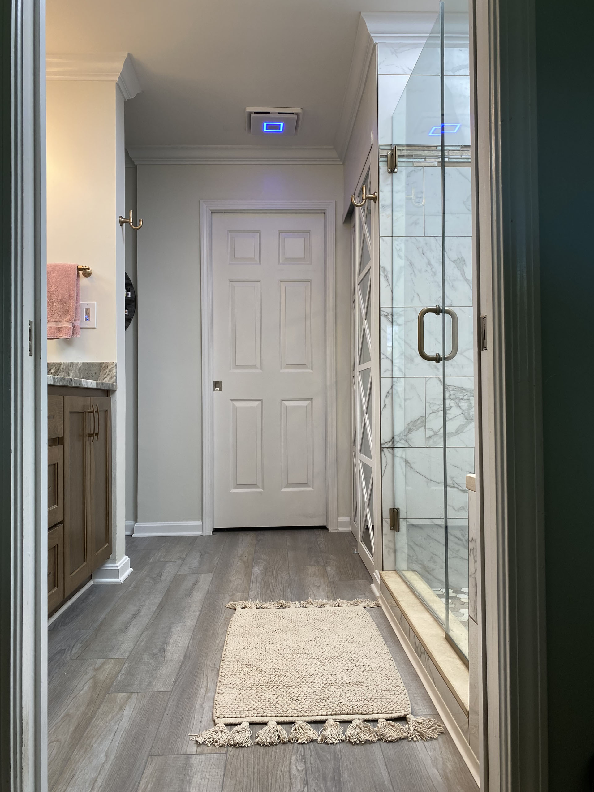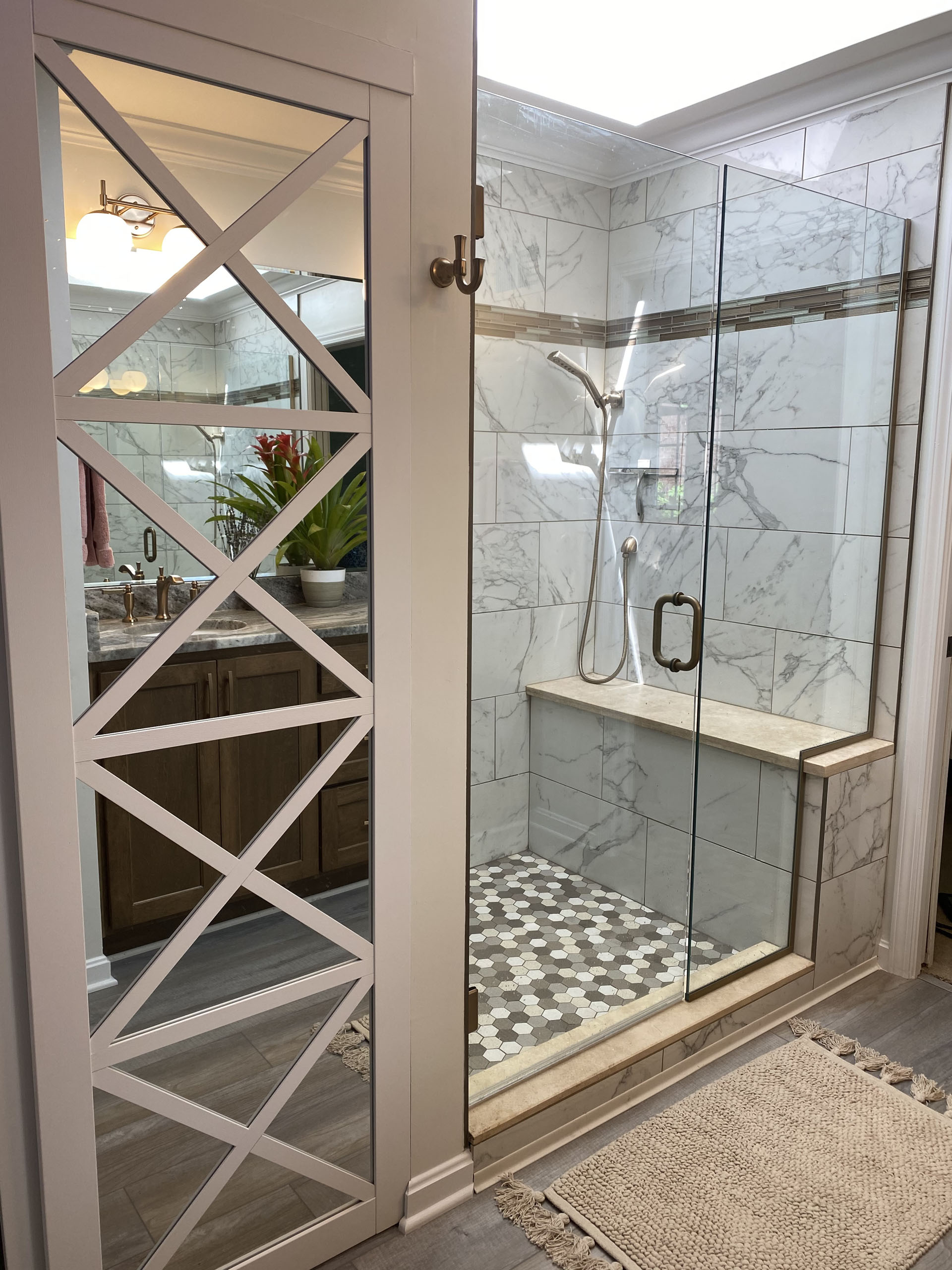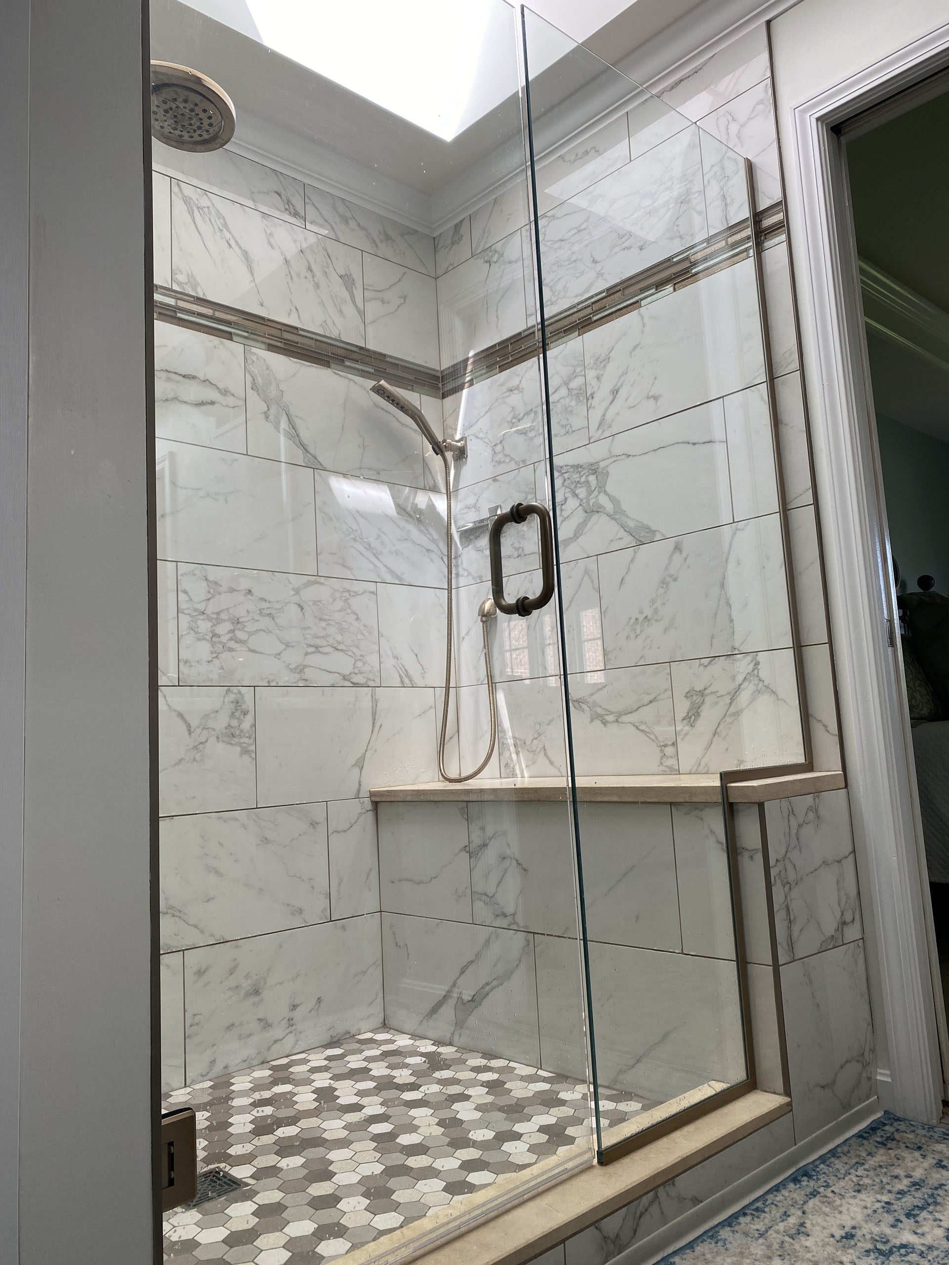The homeowners didn’t have enough storage space and needed a larger shower. They no longer used their tub. They decided on a full tub to shower conversion and to turn the shower into a closet.